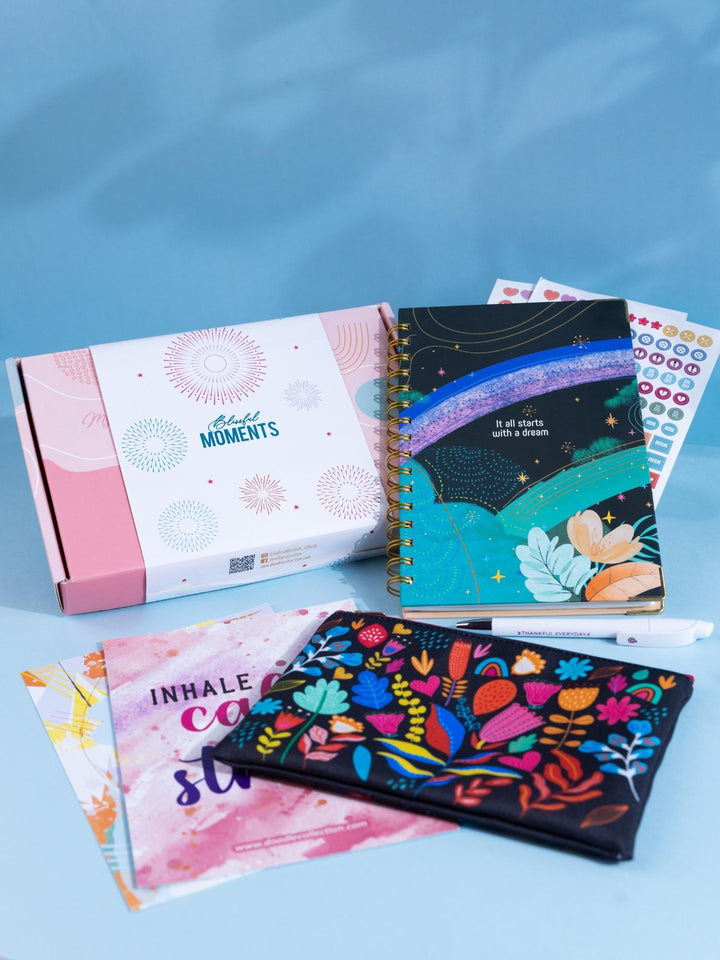 - [A5 SIZE DAILY PLANNER] Stay organized with the Daily Delights gift set, which includes an A5 size hard-bound wiro planner with 192 colorful pages specifically designed for daily planning.