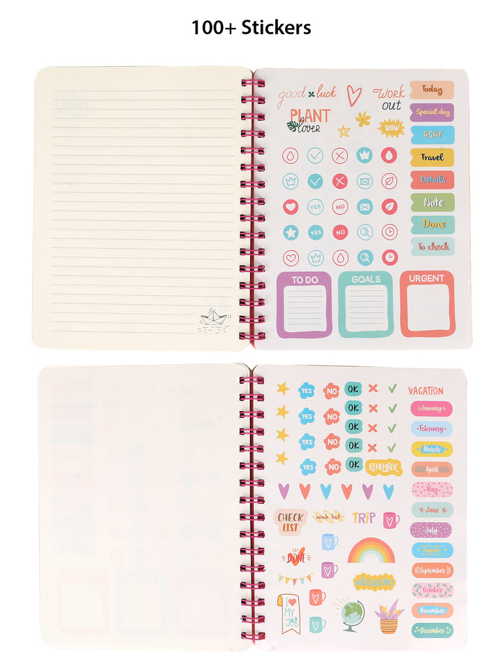 ADD-ONS: This notebook is styled with a rounded rectangular, theme-based, paper dangler that can be used as a bookmark so you can pick up where you left off. It also includes 2 sticker sheets to make journaling fun.