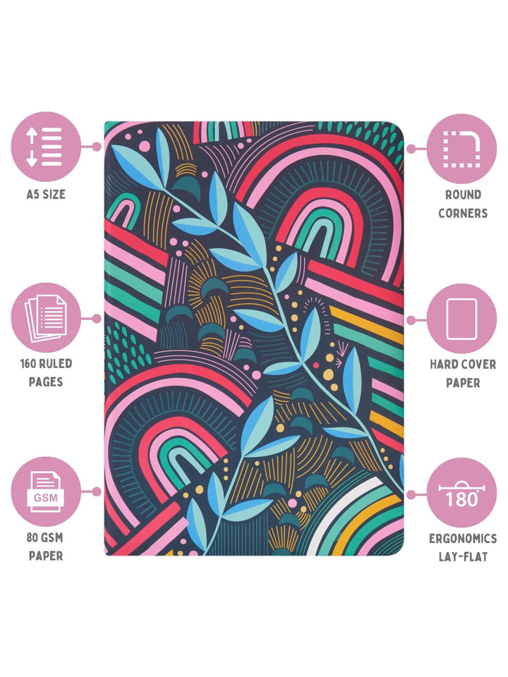 The Hard Bound Paper Notebook is the perfect companion for all your writing needs. This notebook is hard bound, ensuring durability and stability for long-term use. The soft foam padding offers a comfortable writing experience. With a compact size of A5 5.7 x 8.25 inches, it is perfect to take on-the-go. The two satin ribbons make bookmarking and organization easy. The notebook features a flat opening which allows for convenient writing on both sides of the page. It contains high-quality 80 gsm paper with 160 pages, providing ample space for all your writing and note-taking.