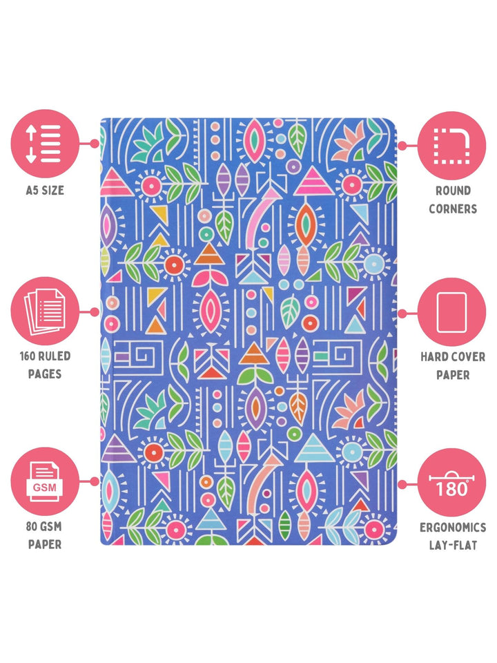 The Hard Bound Paper Notebook is the perfect companion for all your writing needs. This notebook is hard bound, ensuring durability and stability for long-term use. The soft foam padding offers a comfortable writing experience. With a compact size of A5 5.7 x 8.25 inches, it is perfect to take on-the-go. The two satin ribbons make bookmarking and organization easy. The notebook features a flat opening which allows for convenient writing on both sides of the page. It contains high-quality 80 gsm paper with 160 pages, providing ample space for all your writing and note-taking.