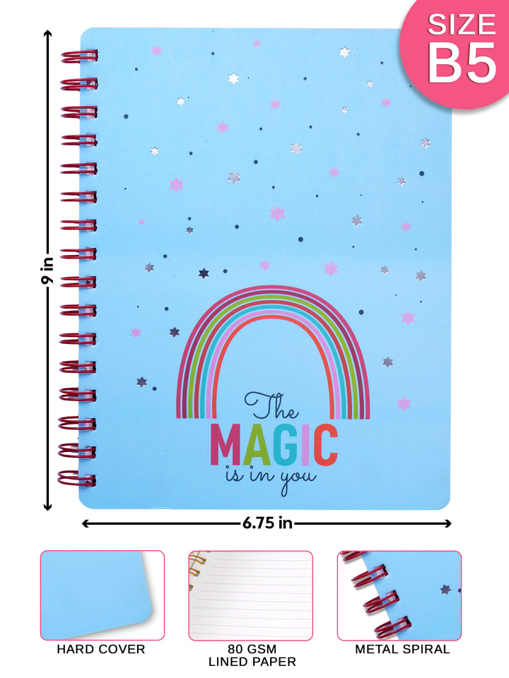 The Magical Rainbow notebook by Doodle Collection is here to remind you how awesome you are. This colorful hard-bound notebook comes with a rainbow-shaped dangler that adds some extra charm to its playful look.