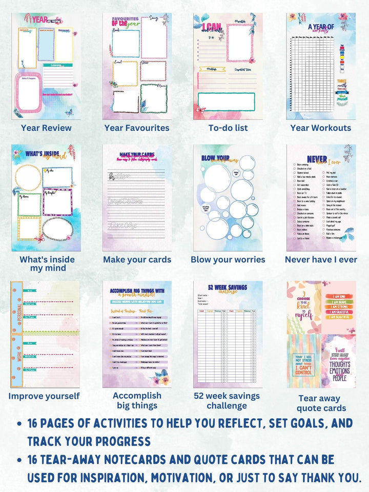 - TEAR AWAY NOTE CARDS & QUOTE CARDS : The planner also features 16 tear-away notecards and quote cards that can be used for inspiration, motivation, or as reminders.