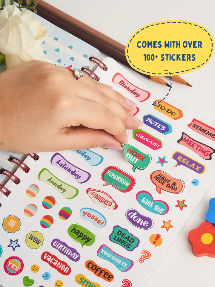 - Personalize with Stickers: Get creative with 100 vibrant stickers to make your planner as unique as you are.