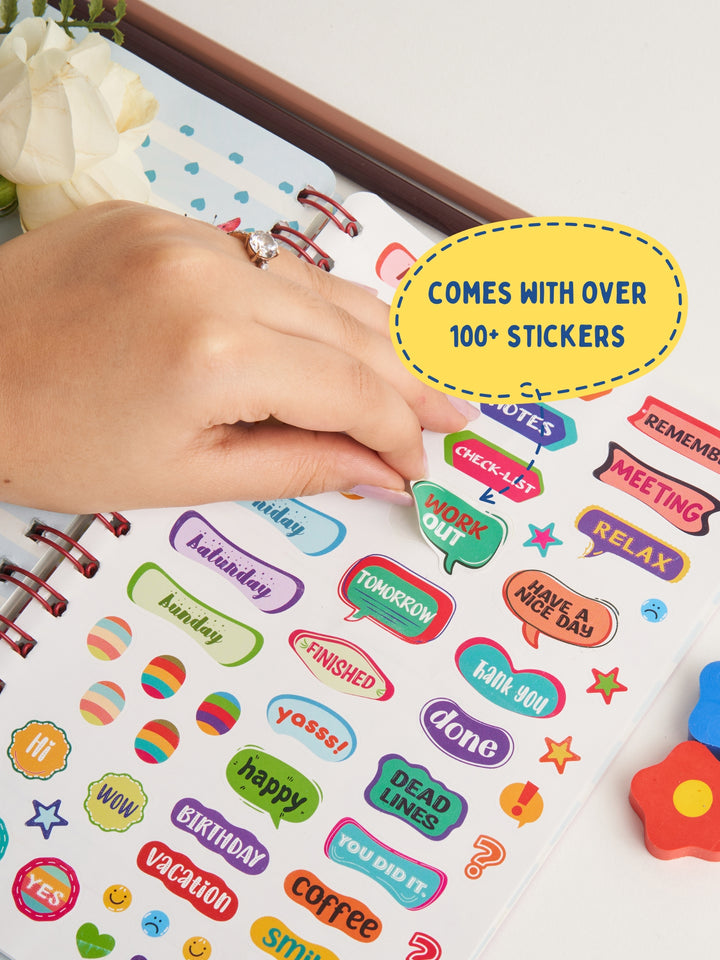 - Personalize with Stickers: Get creative with 100 vibrant stickers to make your planner as unique as you are.
