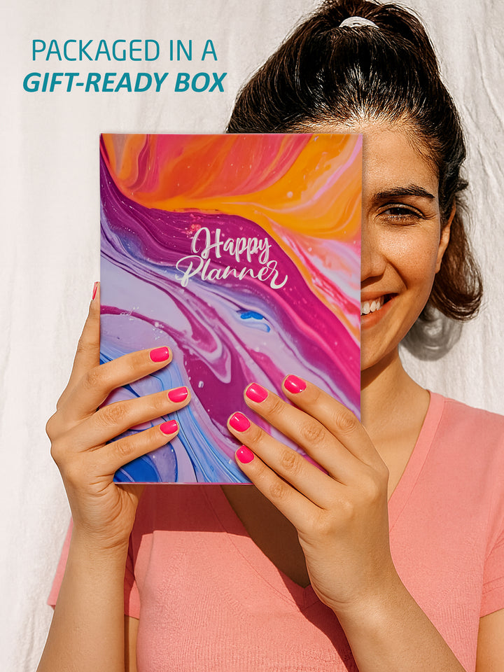 The B5 Happiness Planner is all about making organization fun and inspiring. Whether you're planning your daily tasks or dreaming big, this planner is here to help you every step of the way! With its hardbound cover and undated pages, this planner lets you dive into planning whenever you want. Packed with fun features, it’s the perfect way to keep your life on track while adding a touch of joy to every day. It's a perfect gift for anyone looking to add a bit of creativity and happiness to their planning routine.