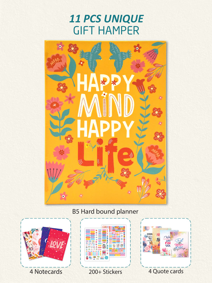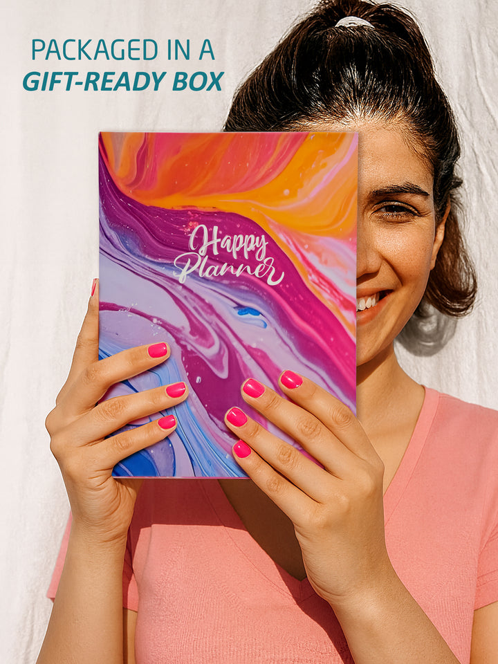 The B5 Happiness Planner is all about making organization fun and inspiring. Whether you're planning your daily tasks or dreaming big, this planner is here to help you every step of the way! With its hardbound cover and undated pages, this planner lets you dive into planning whenever you want. Packed with fun features, it’s the perfect way to keep your life on track while adding a touch of joy to every day. It's a perfect gift for anyone looking to add a bit of creativity and happiness to their planning routine.