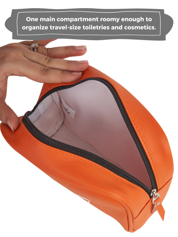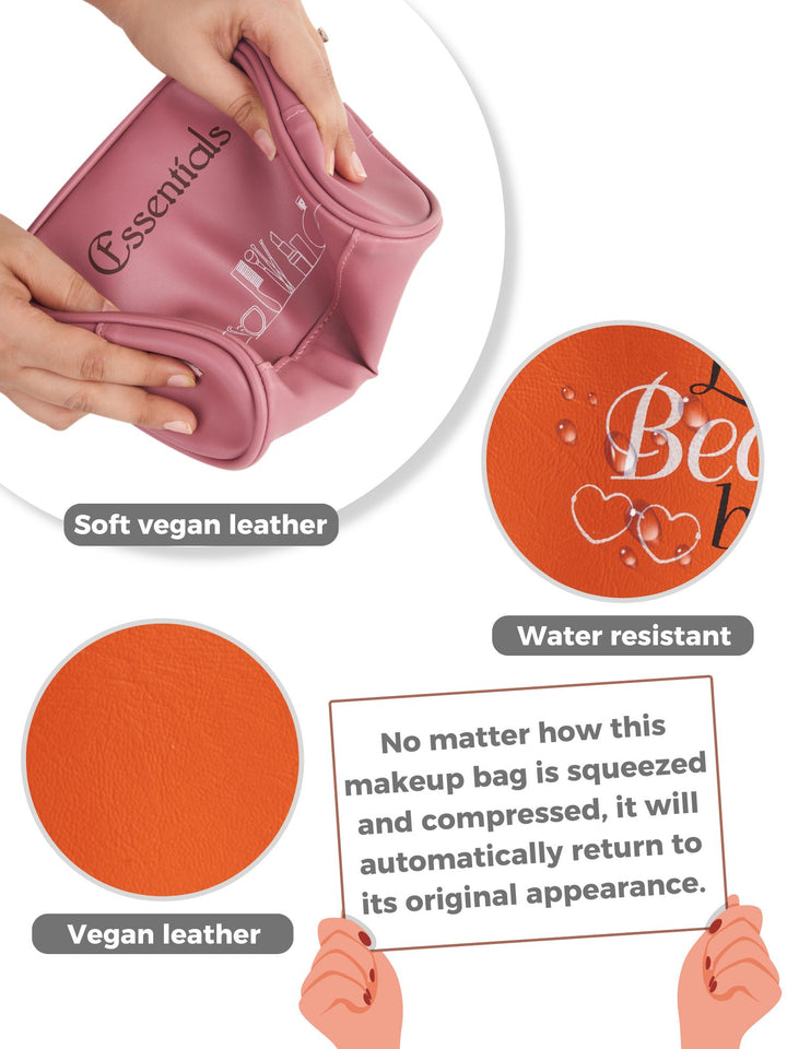 - VEGAN LEATHER : This cosmetic pouch is made of vegan leather, making it stylish and durable.