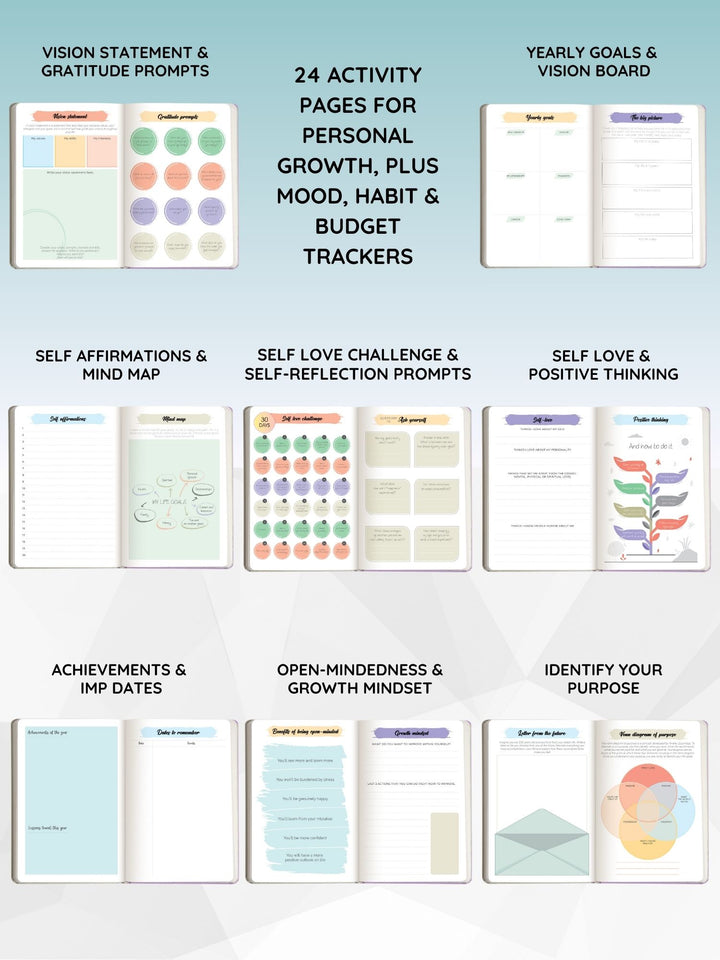 336 PAGES FOR ORGANIZATION AND REFLECTION: 336 pages that consist of 24 activity pages to help reflect on your personal growth, trackers for mood, habits and budgeting, 6 comprehensive monthly planners, 288 pages for daily planning and journaling, this planner offers ample space for you to organize your daily tasks and commitments, as well as reflect on your personal growth and achievements.