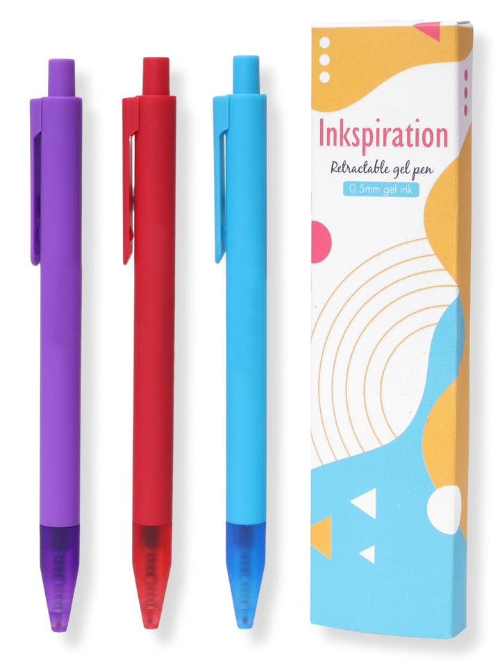Premium Writing Experience: Inkspiration's set of 3 retractable gel pens, for ultrasmooth writing without any smears or smudges.