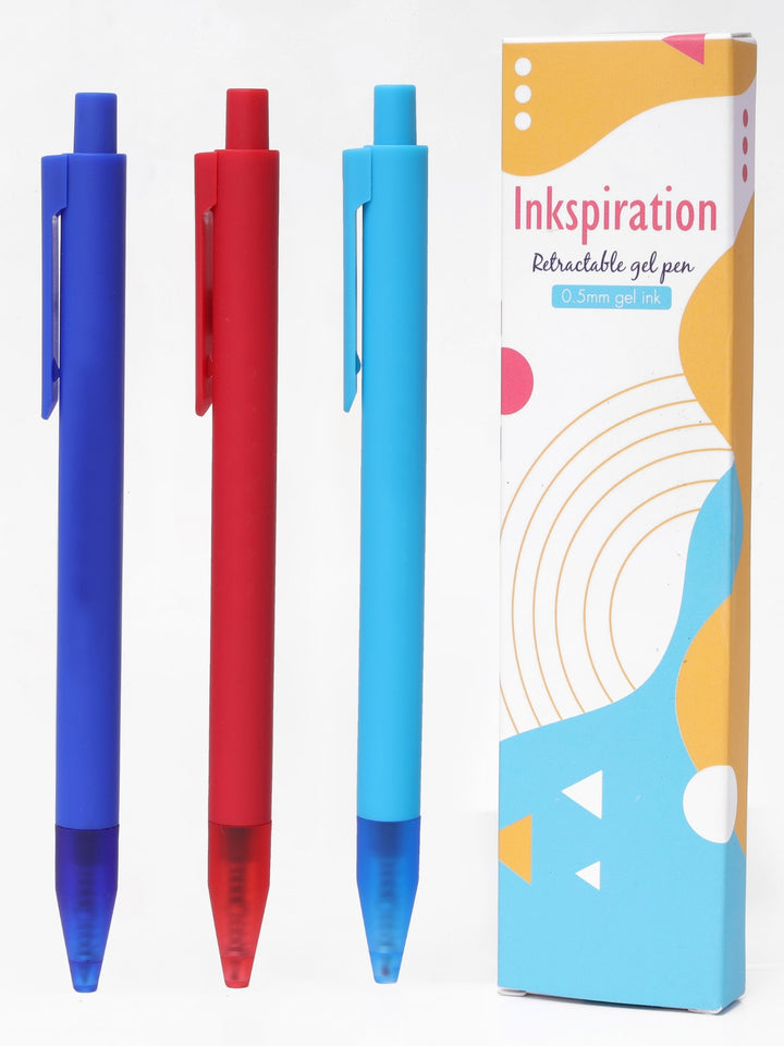 Premium Writing Experience: Inkspiration's set of 3 retractable gel pens, for ultrasmooth writing without any smears or smudges.