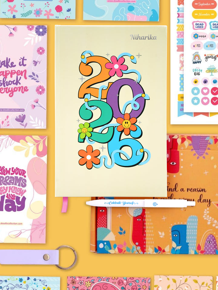 A5 Hardbound Planner: 216 pages, 12 undated monthly planners, 144 dateless ruled pages, and 16 activity pages for reflection, goal-setting, and progress tracking.