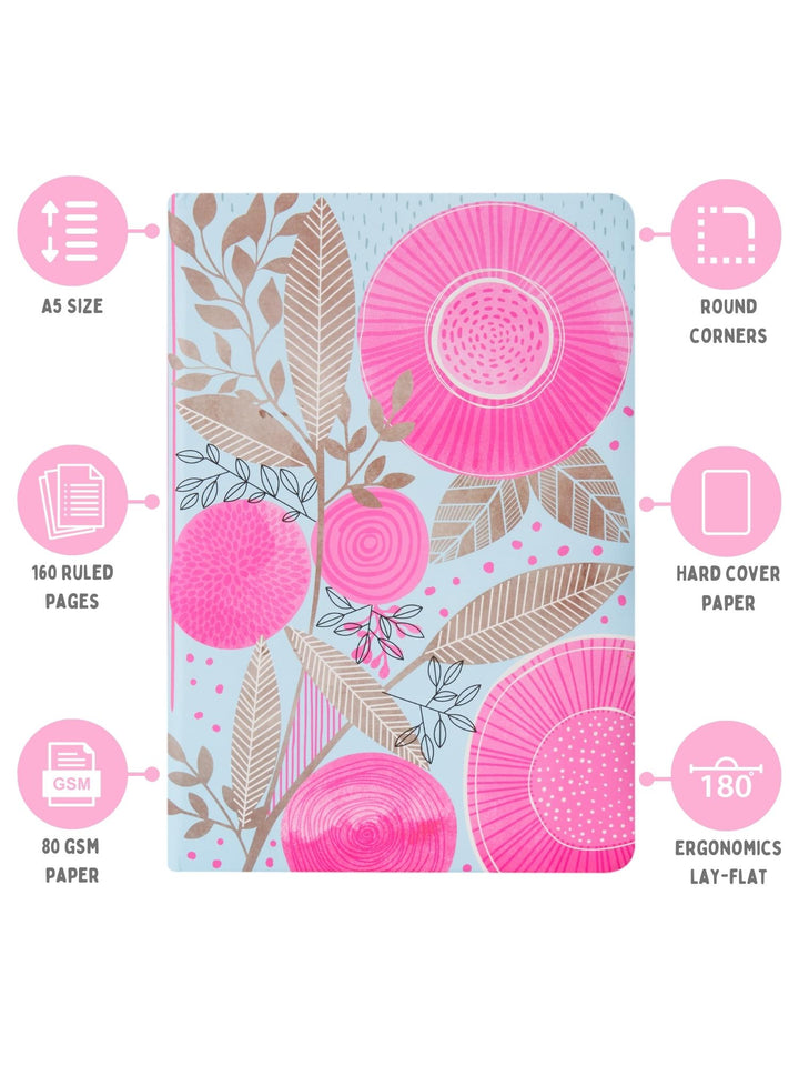 The Hard Bound Paper Notebook is the perfect companion for all your writing needs. This notebook is hard bound, ensuring durability and stability for long-term use. The soft foam padding offers a comfortable writing experience. With a compact size of A5 5.7 x 8.25 inches, it is perfect to take on-the-go. The two satin ribbons make bookmarking and organization easy. The notebook features a flat opening which allows for convenient writing on both sides of the page. It contains high-quality 80 gsm paper with 160 pages, providing ample space for all your writing and note-taking.
