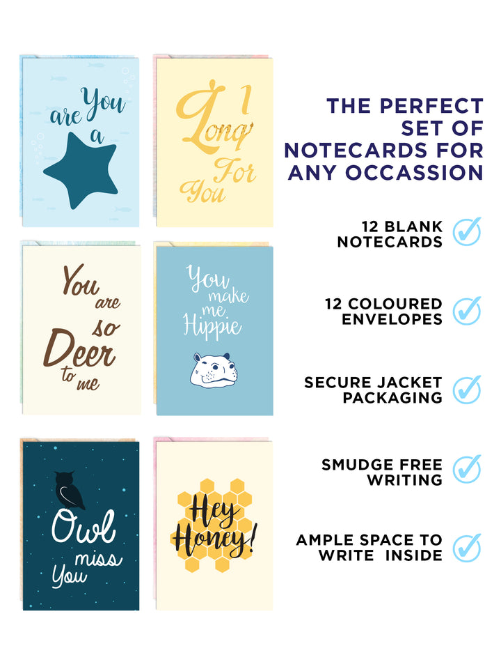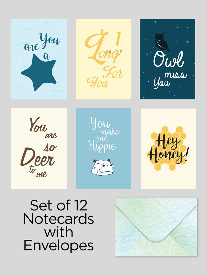 Send love, gratitude, and thoughtful wishes with our Set of 12 Notecards. Featuring 6 unique designs printed on premium thick card, these notecards are ideal for writing that perfect "thank you," "congratulations," or “just thinking of you” message.